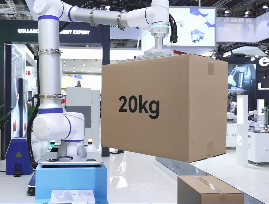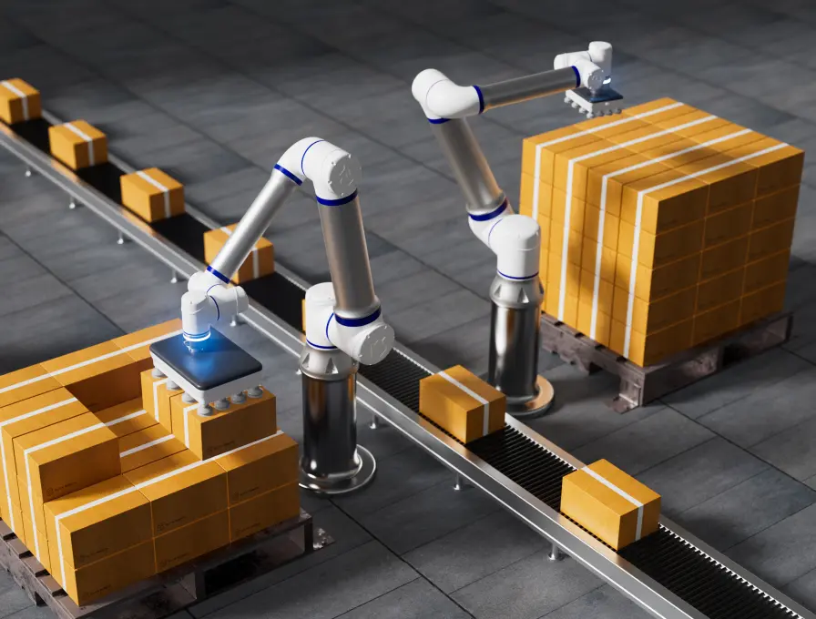Lower operating costs, optimize your end-of-line efficiency and avoid the risk of workplace injuries caused by heavy lifting with the palletizing solutions integrating our cobot arms. With a load capacity of up to 25 kg and an outreach of up to 1,800 mm, our robotic arms are the perfect choice for handling medium to heavy weight loading tasks and transforming pressure into performance.