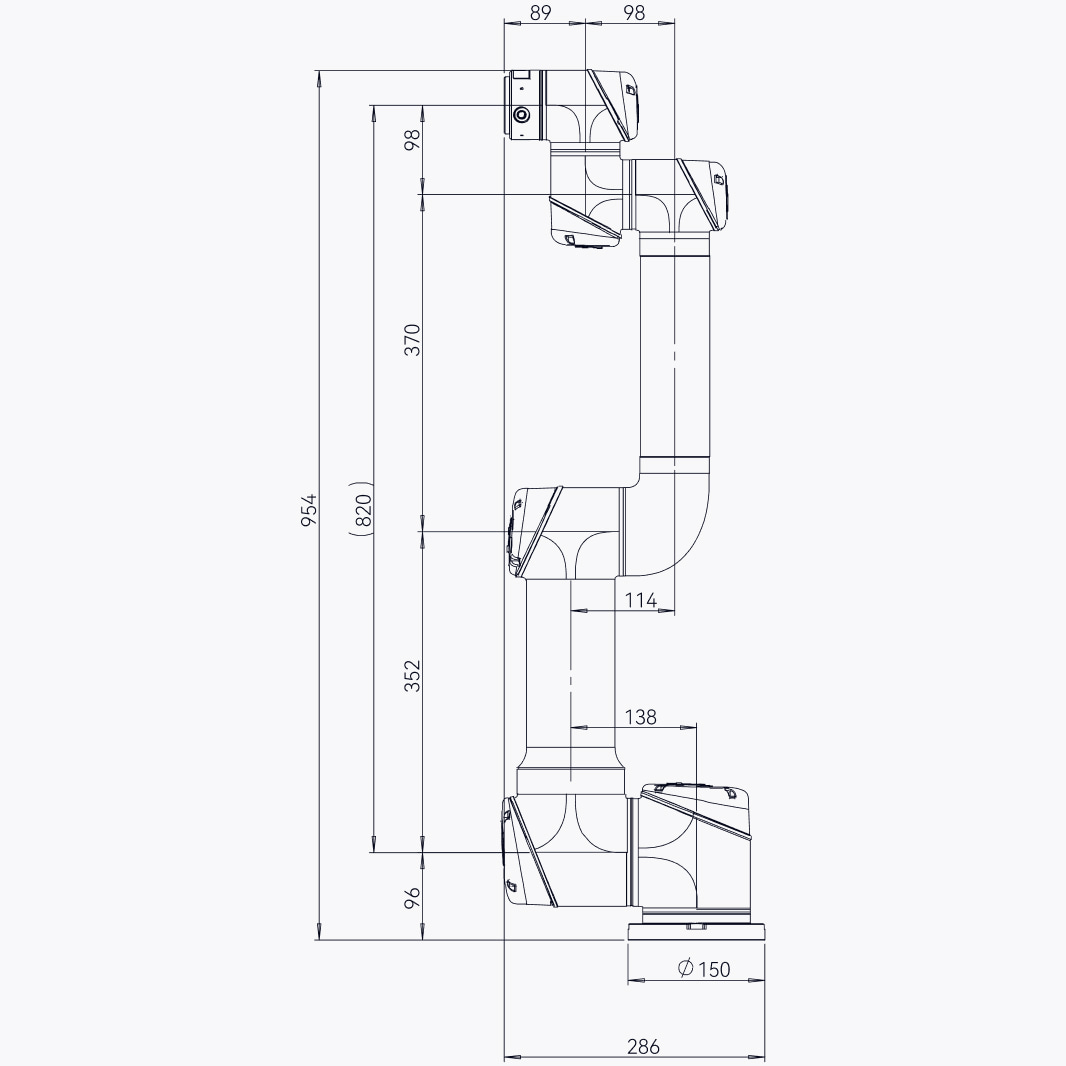 Elite Robots EC68-08 robotic arm (17kg weight; 954mm total cobot length; Ø150mm footprint). Includes standard 5.5m cable (optional cable lengths are also available: 1.5m; 3m; 8m; 10m).